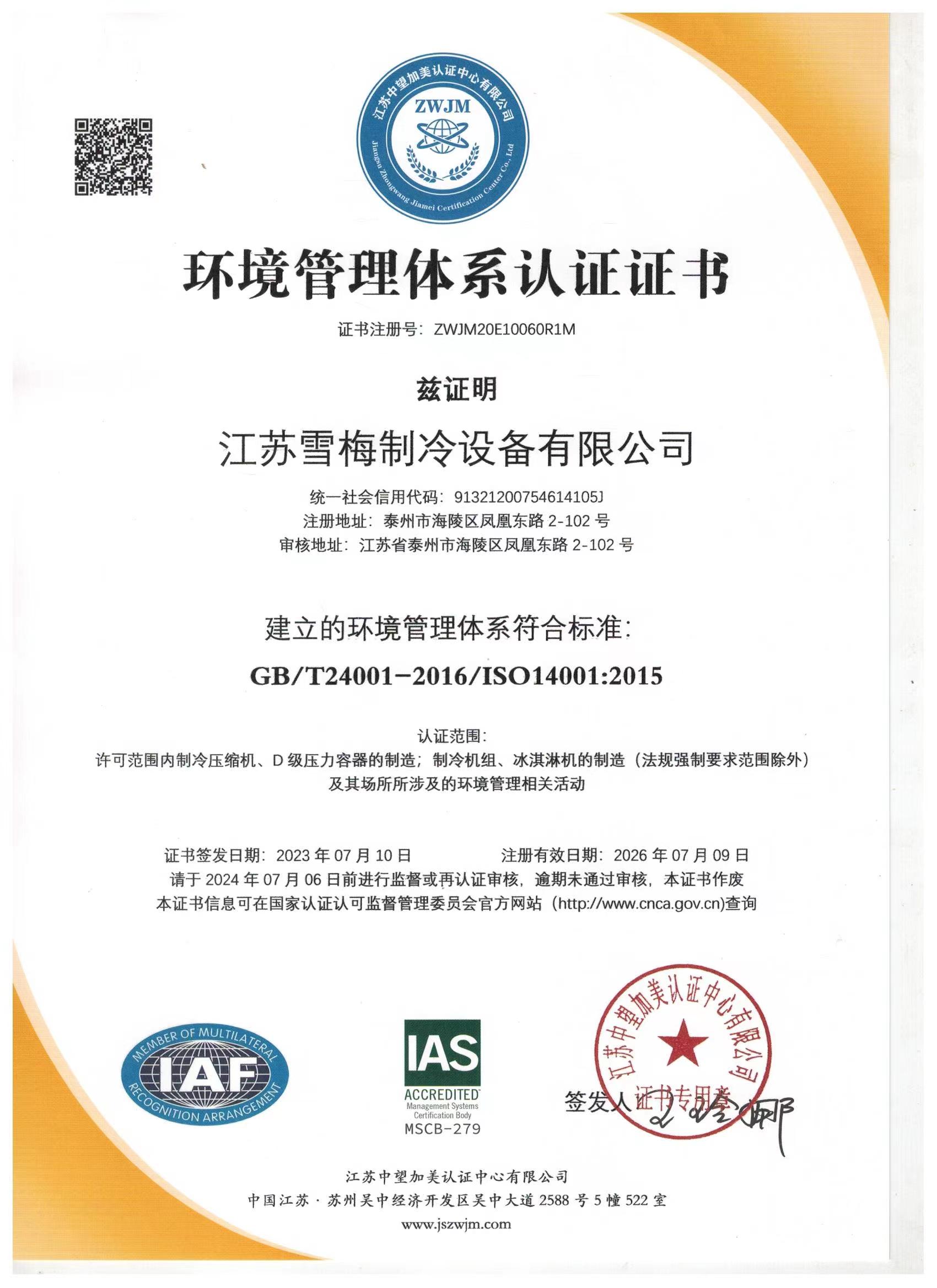 江蘇雪梅制冷設備有限公司是致力于“雪梅”品牌制冷設備研究開發(fā)和制造的高科技企業(yè),是聯(lián)合國環(huán)保署和中國政府確定的生產環(huán)保節(jié)能型半封閉制冷壓縮機的示范企業(yè)。